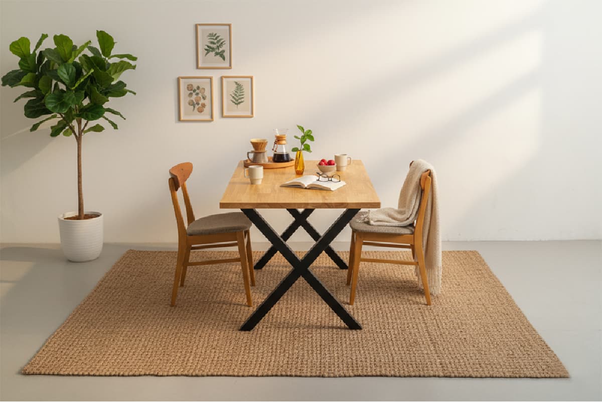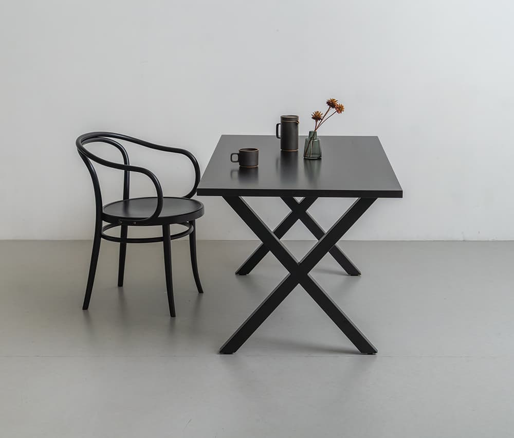 テーブル脚にはキズや錆びに強いスチール素材を採用。
