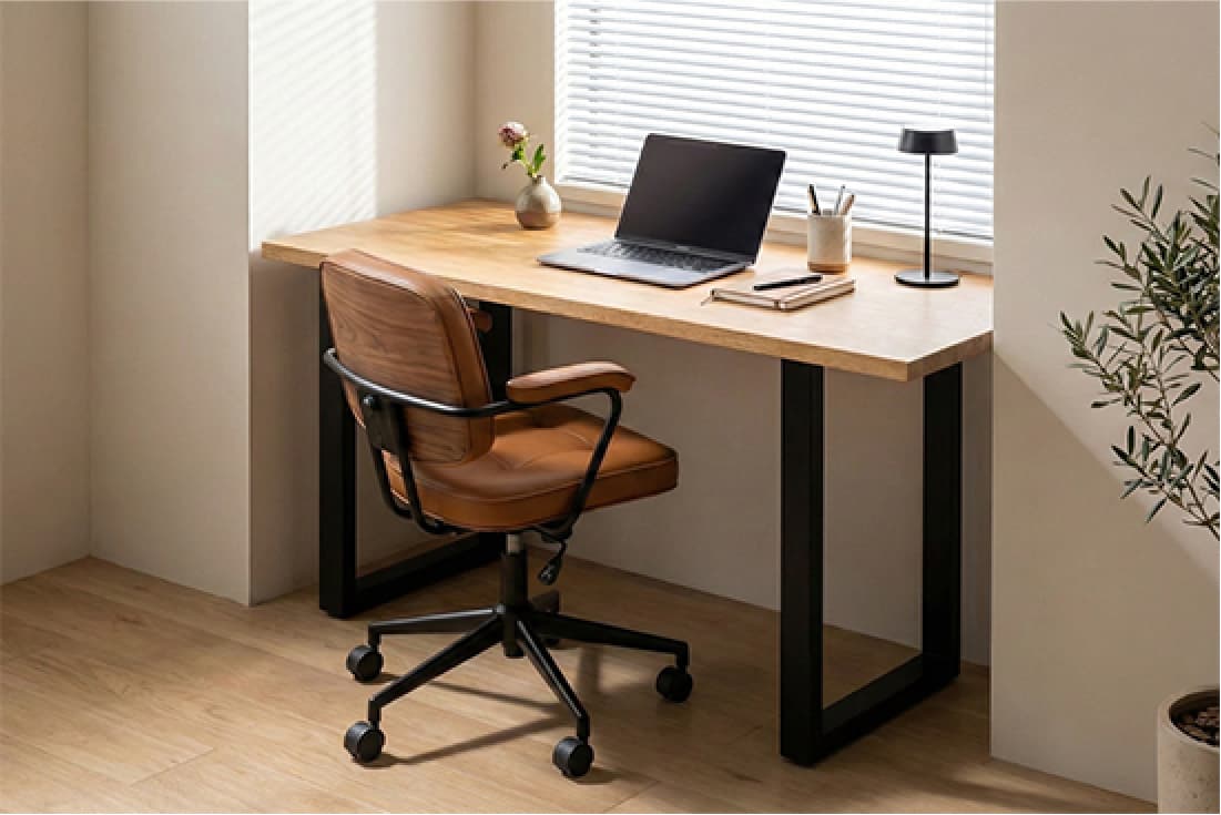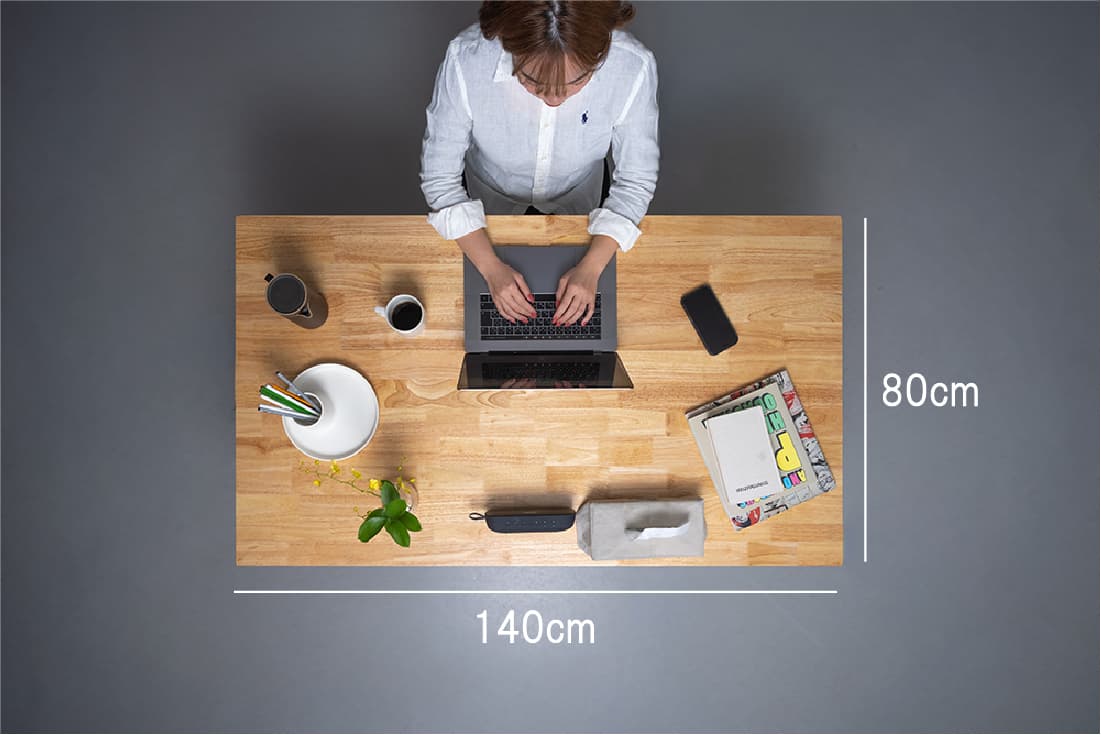 モニター画面と目の距離をしっかり確保できる約80cmの奥行き。視線にゆとりが生まれ、長時間の作業も快適に行えます。資料を広げて作業したい方や、仕事と自分らしい空間づくりを両立したい方におすすめのサイズ感です。