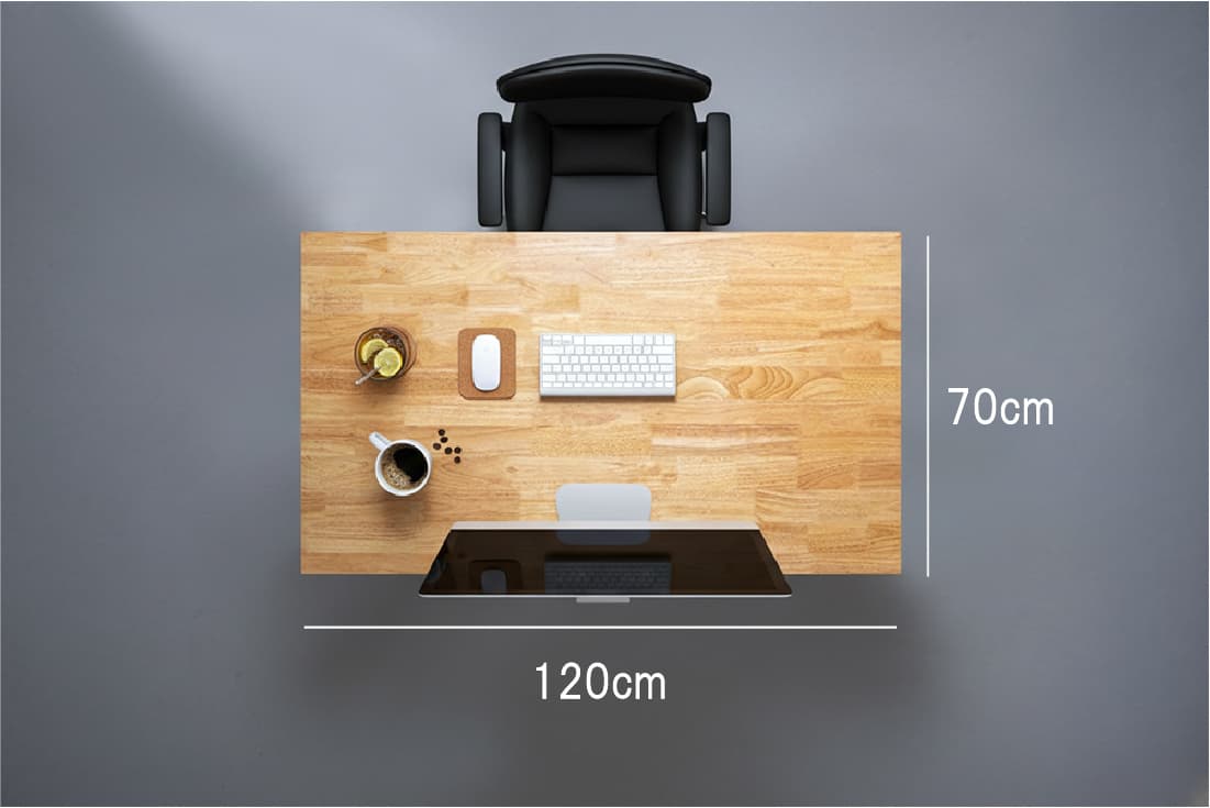 デスクトップPCを置いても、幅120cmあれば作業スペースにゆとりが生まれます。